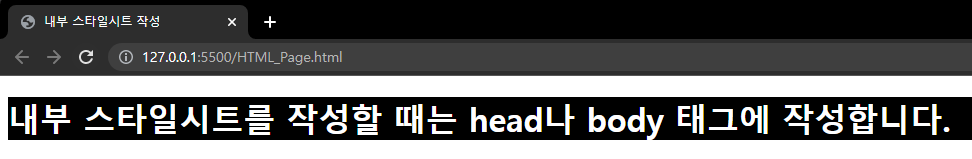 <h1> 내부 스타일시트를 작성할 때는 head나 body 태그에 작성합니다. </h1>