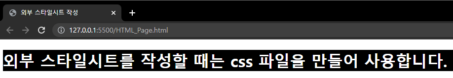 <h1> 외부 스타일시트를 작성할 때는 css 파일을 만들어 사용합니다. </h1>