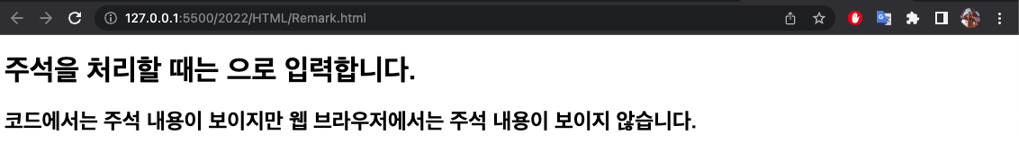 코드에서는 주석 내용이 보이지만 웹 브라우저에서는 주석 내용이 보이지