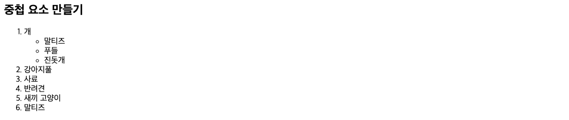 <h2> 중첩 요소 만들기</h2> <!-- 중첩 요소 만들기 -->