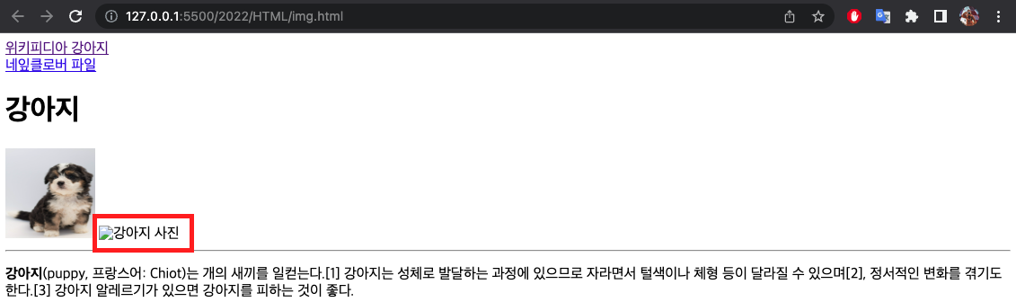 ex) <img src="puppy.jpg" alt="강아지 사진">