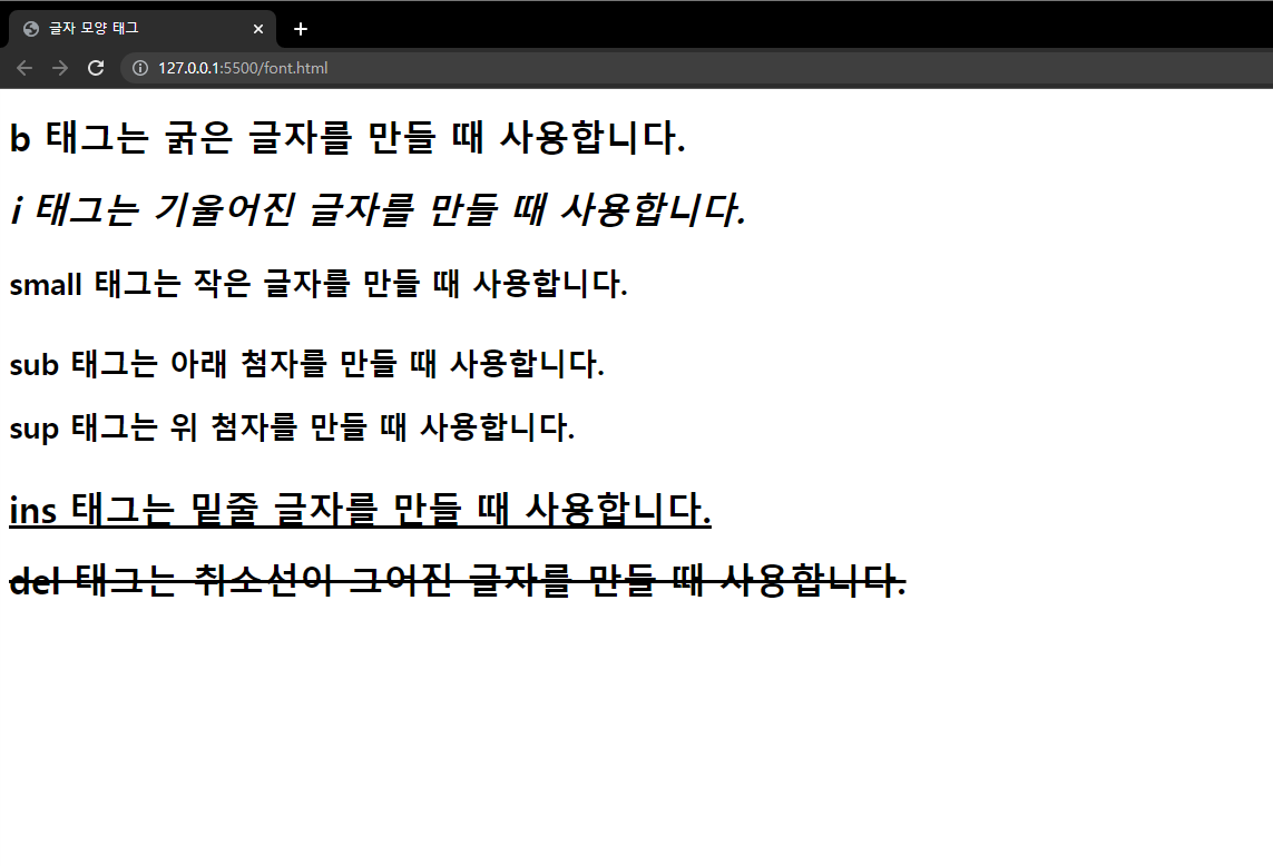 ㅁ HTML5는 글자 모양 태그를 사용해 웹 페이지의 글자에 행태와 의미를 부여할 수 있습니다.