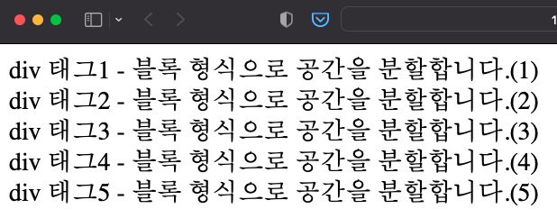 <div> div 태그5 - 블록 형식으로 공간을 분할합니다.(5) </div>