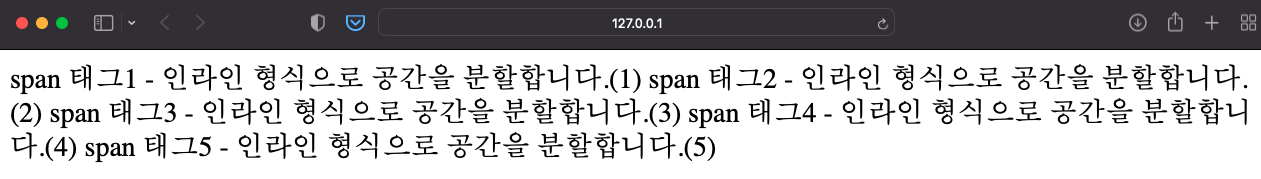 <span> span 태그5 - 인라인 형식으로 공간을 분할합니다.(5) </span>