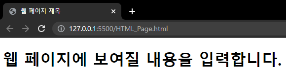 <h1> 웹 페이지에 보여질 내용을 입력합니다. </h1>